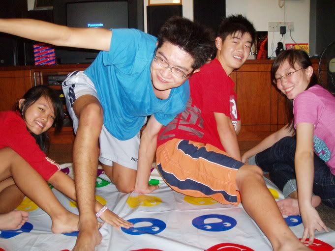 Twister Gamer: Leonard, kelly, meiting (me) and leonard's cousin...